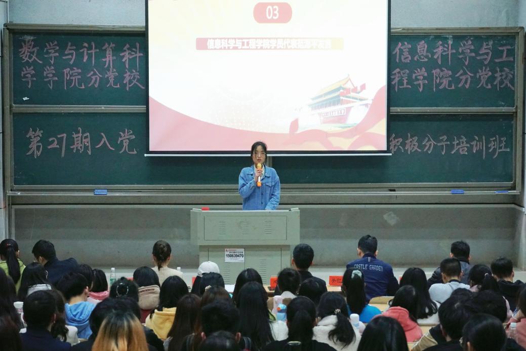 4月15日晚,开云官网分党校和数学与计算科学学院分党校联合举办的第二十七期入党积极分子培训班开班典礼在润寰南105隆重举行,本期培训班的156名学员参加。两个学院分党校领导、支部书记、学工办主任和辅导员应邀出席。典礼由数学与计算科学学院党总支书记、分党校校长曾玉华主持。