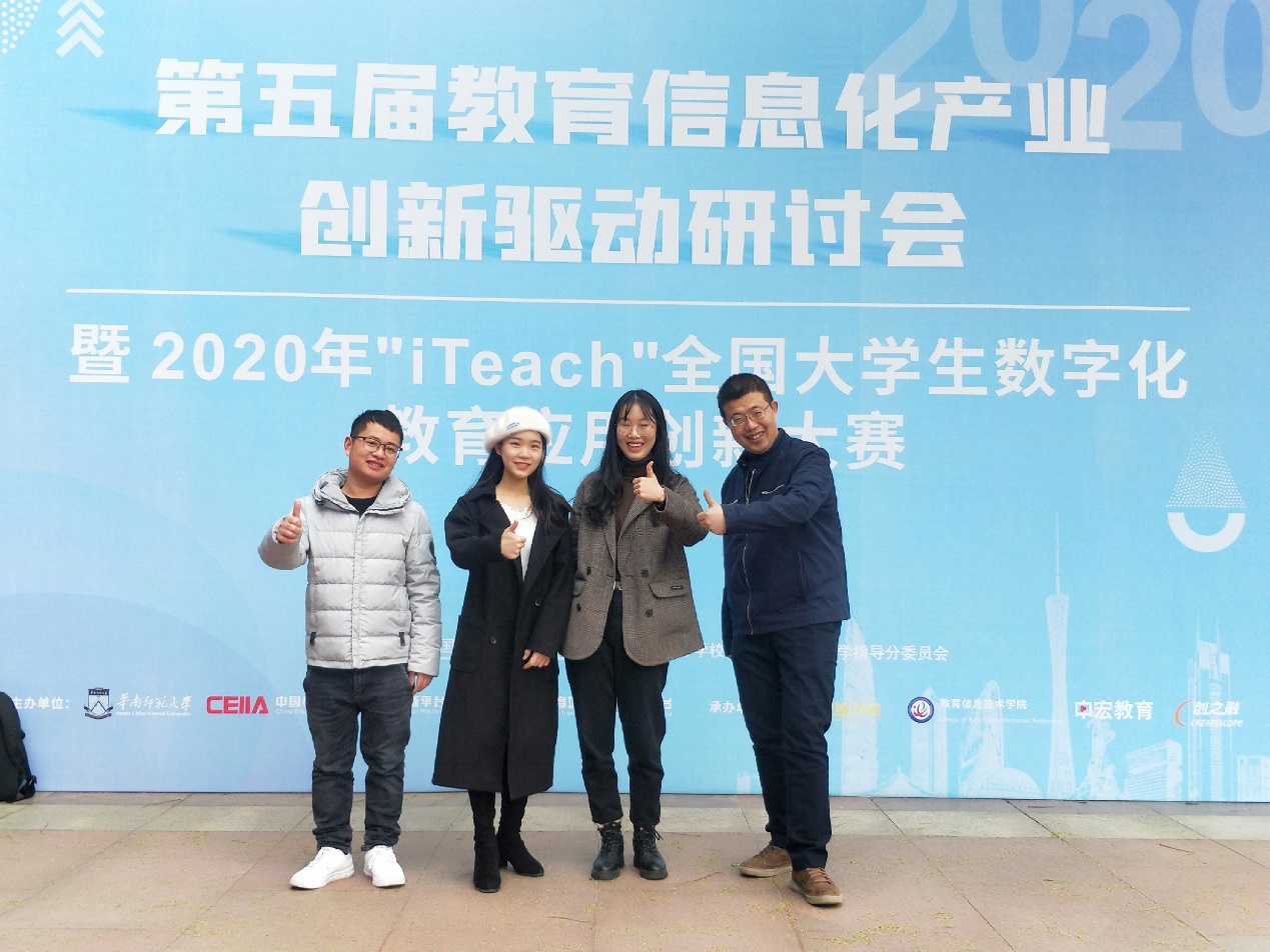 12月17日至19日,2020年“iTeach”全国大学生数字化教育应用创新大赛决赛在广州举行。开云官网教育技术学专业肖翊君、阙紫琳两个团队的作品进入决赛,并分获一等奖和二等奖,蒋郑菊、徐仪婷、黄奕宁、谭燕、罗慧文五个团队荣获大赛三等奖。我校荣获大赛“优秀组织单位”,何向阳老师获评“优秀指导教师”。该成绩的取得,充分展现了开云官网学生扎实的专业功底。