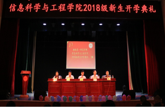 (通讯员 肖丽菲 邓力超 陈思迁)2018年9月9日上午8点30分,信息科学与工程学院于实验剧场隆重举行2018级新生开学典礼。校长助理、信息科学与工程学院院长李勇帆、学院党总支书记王杰文、副院长田祖伟、王建军、党总支副书记易利、各专业教研室主任、教师代表、全体辅导员、学生干部代表和2018级全体新生累计300余人参加开学典礼。典礼由副书记易利主持。