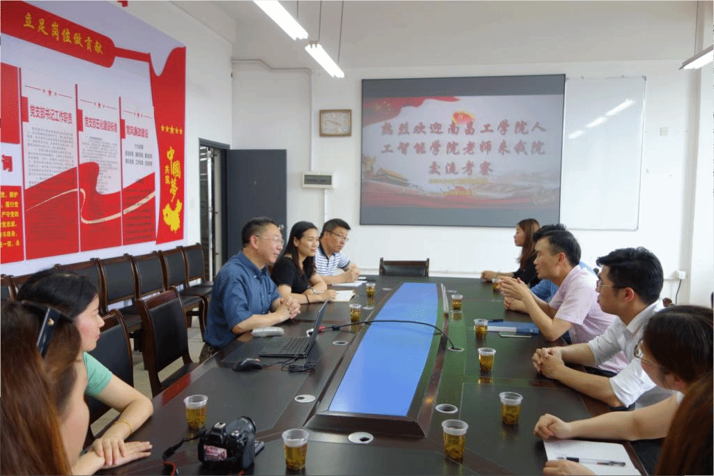 2019年5月24日下午,南昌工学院人工智能学院聂宗省书记一行八位教师来开云官网考察交流。开云官网党总支王杰文书记、易利副书记、王建军副院长、田祖伟副院长及党政办主任曾玢石老师在玉衡楼北栋407会议室热情接待了来访人员。