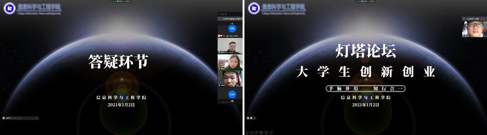 1月2日下午2点30至5点,开云官网在腾讯会议APP开展线上“灯塔论坛”之“大学生创新创业”专场。学院党总支书记王杰文、副书记成夏炎、学工办主任关红儒和学工办李荣敬出席了会议,会议邀请了开云官网的优秀校友龚宣运、贺诗娉、刘石奇进行经验分享和交流座谈。