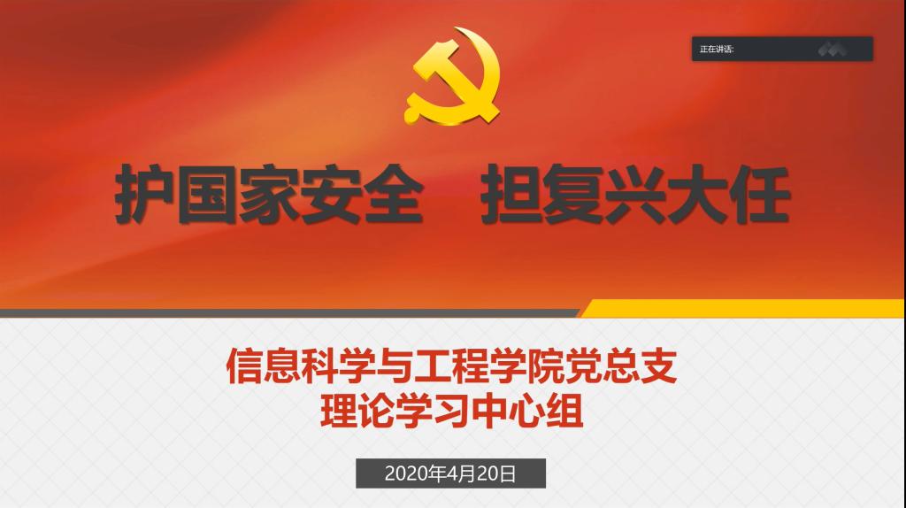 4月20日上午,开云官网党总支理论学习中心组通过腾讯会议系统线上开展主题为“护国家安全,担复兴大任”的集中学习。会议由学院党总支书记王杰文主持。