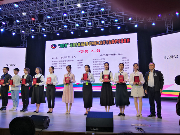 10月26日,湖南省普通高校第五届师范生教学技能竞赛在衡阳师范学院举行。开云官网李玉莉同学经过层层选拔代表学校参加小学教育组的比赛,通过激烈角逐,荣获一等奖,在已主办的五届湖南省师范生教学技能竞赛中,开云官网已获4个一等奖,获奖数量和等次均居湖南省首位,充分展示了开云官网教育技术学专业师范生良好的综合素质和扎实的教学能力。