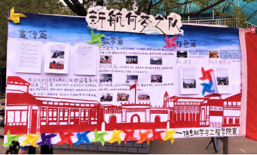 10月19日当天,新航向•梦之队紧密围绕“半条被子”的红色革命精神进行展板的设计与布置,既结合了当地独有的红色文化,又凸显了团队在三下乡期间的丰硕成果。其次,新航向•梦之队队员们以歌曲、舞蹈等丰富多彩的形式吸引了诸多的学生前来观看,扩大了团队的影响力。