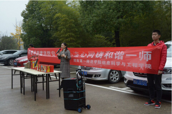 (通讯员 唐瑞鸿 邹雅移)为进一步普及消防安全知识,提高全院师生的防范自救意识与突发事件处理能力,2018年11月21日中午12:30,信息科学与工程学院在体育馆外侧成功举办“手牵手共建消防校园,心连心同铸和谐一师” 消防安全教育活动。校保卫处副处长李亚林、学生工作处副处长吴涛、学生工作处副处长欧阳伶俐、院党总支书记王杰文、副院长王建军、党总支副书记易利、学工办全体老师出席本次活动。活动特邀湖南协诚消防学校吕勇、李友两位教官为开云官网师生宣讲消防安全知识。
