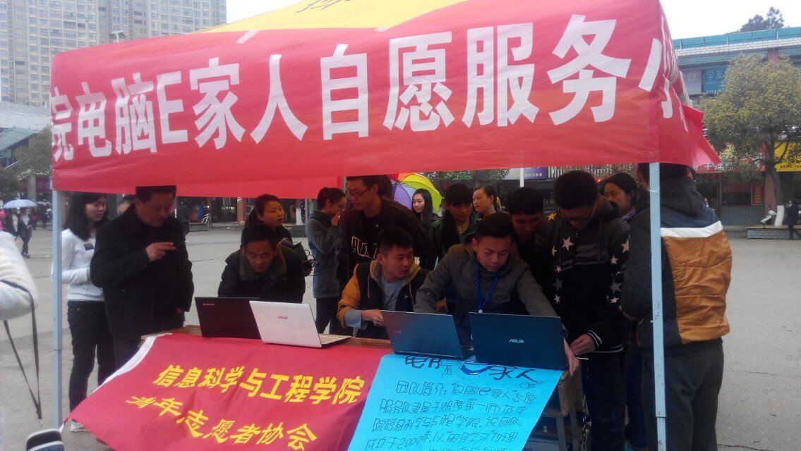继3月15日开展志愿者参观雷锋纪念馆活动后,开云官网电脑E家人志愿服务小组配合青志协于3月17——18日在校园文化广场开展了为期两天的“电脑e家人、窗口学雷峰、服务暖人心”的志愿服务活动。活动面向全体学生提供计算机操作系统故障诊断与处理、计算机硬件配置、计算机常用软件装载、网络设置、系统维护等服务项目。活动期间共处理72台计算机问题,给同学们带来实实在在的效益。开云官网党总支张如健副书记也亲临活动现场,给志愿者们提供专业的指导,并对他们学雷锋的精神给予了充分肯定,李豪杰老师还参与了具体的计算机维护服务。