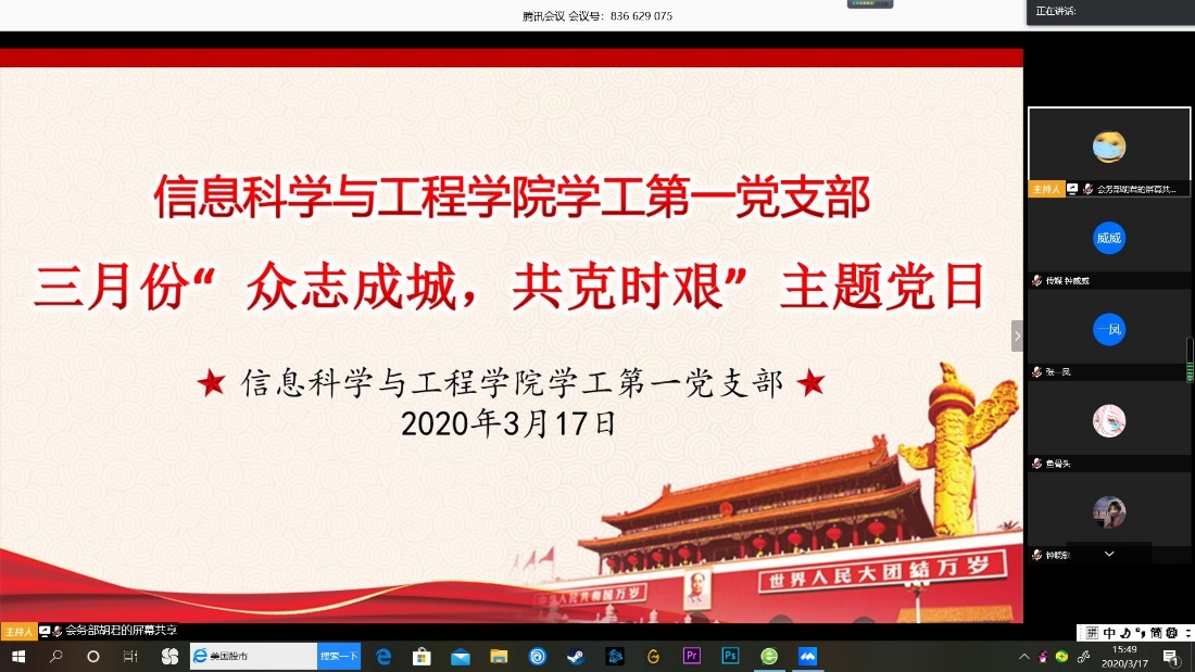 (通讯员 谢晓 邓世娇 钟威威) 3月17日下午,开云官网学工第一党支部、第二党支部分别开展了“众志成城,共克时艰”主题党日活动,本次活动是通过腾讯会议系统在线进行的。学工办主任、学工第一党支部书记关红儒,学工办辅导员李荣敬以及两个支部全体党员参加,学院党总支副书记成夏炎以普通党员的身份参加了学工第二党支部的活动。关红儒、鲁谢若煊分别主持各自所在支部的活动。
