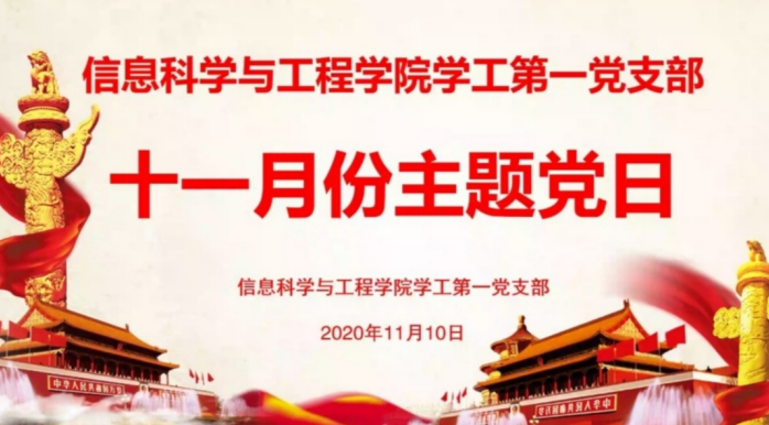 2020年11月10日,信息科学与工程学院学工第一、第二党支部分别采取线上和线下的方式开展十一月份主题党日活动。学院党总支副书记成夏炎、学工第一党支部书记关红儒、学工第二党支部书记李荣敬、学工办老师唐瑞鸿、叶晶以及全体学生党员参加此次党日活动,活动由王丹、罗洵主持。