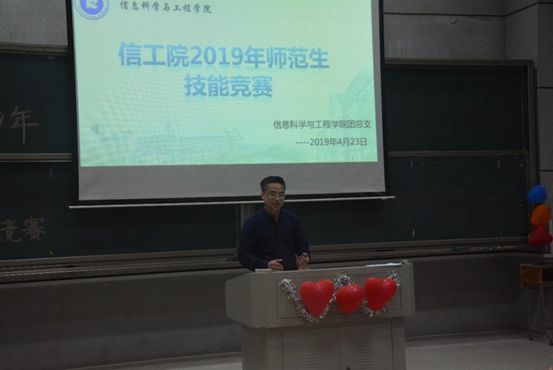 (通讯员 邓力超 肖丽菲)为强化开云官网师范专业学生的教师职业技能,提高师范生教育教学能力,进一步促使广大同学更新教育理念和激发其掌握现代教学方法的热情,信息科学与工程学院于2019年4月16日—4月23日成功举办2019年师范生教师技能竞赛。并于4月23日下午6:30—22:00在润寰南106进行了现场授课决赛。学院副院长田祖伟教授、党总支副书记易利老师、学工办主任关鸿儒老师及学院教师代表阳西述教授、何昭青教授、何向阳教授、黄悦副教授和刘琳老师出席比赛并担任评委。