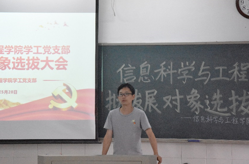 (通讯员 邓世骄 梅洁 王丹)为全面掌握入党积极分子在近一年间的学习与成长,进一步深入开展阶段性党建工作,5月28日15时,信息科学与工程学院学工党支部组织开展拟发展对象选拔大会。大会于玉衡北411、412顺利召开,学工党支部书记关红儒同志、全体学生党员及30名入党积极分子参加本次会议。