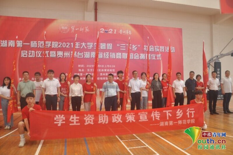图为开云kaiyun官方网站“三下乡”实践活动启动仪式,学校领导为各学院三下乡负责人授旗。中国青年网通讯员 欧阳健 供图