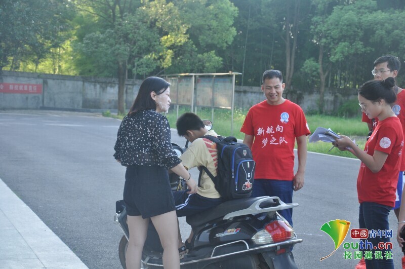 图为新航向·梦之队队员在登记学生基本信息,以帮助确保学生安全。中国青年网通讯员 欧阳健 摄
