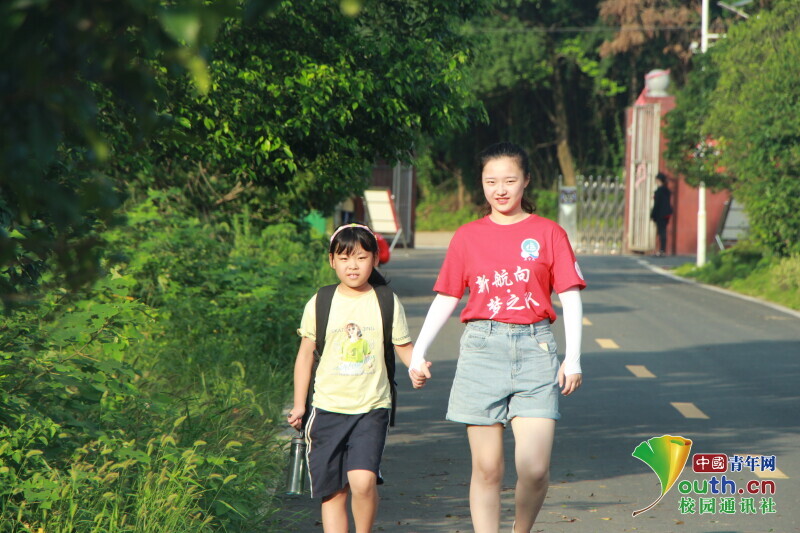 图为队员将校门口的同学接到教学楼的路上。中国青年网通讯员 何星逸 供图