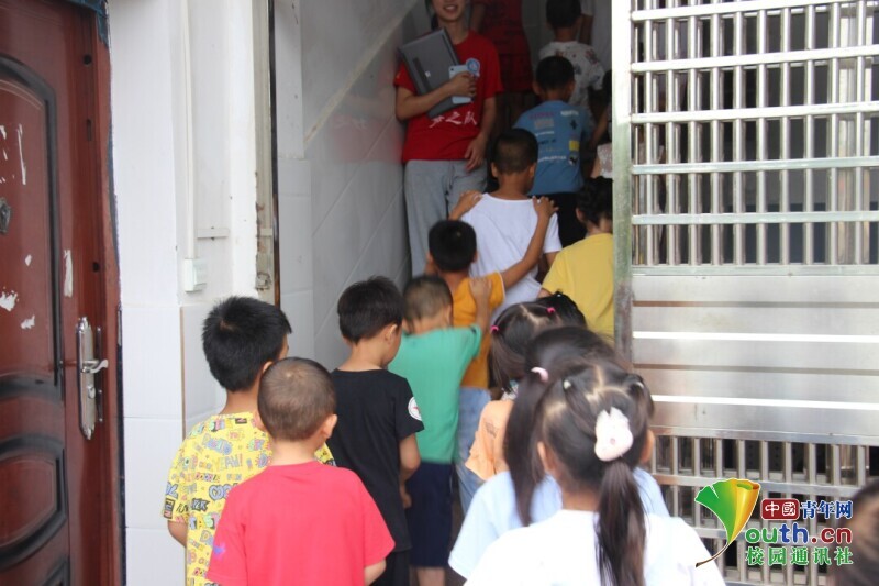 图为志愿者老师组织学生有序排队去往上课教室。中国青年网通讯员 邹诗琪 摄