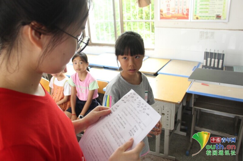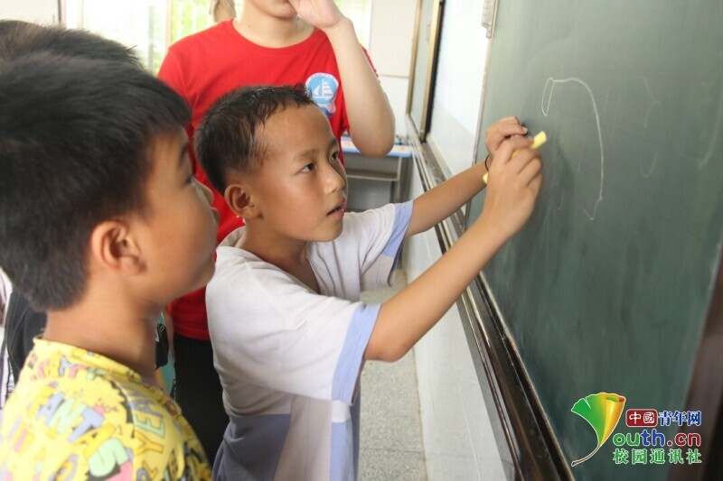 图为志愿者老师在向学生讲解“你画我猜”游戏规则。中国青年网通讯员 欧阳健 摄
