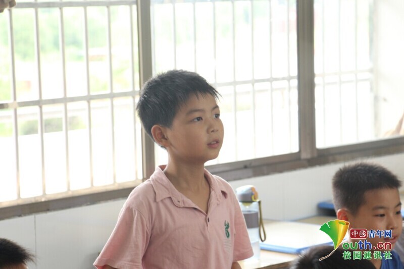 图为害羞的小女孩,站起来说出自己心中的班集体是什么样子的。中国青年网通讯员 邹诗琪 摄
