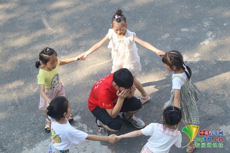 图为志愿者在课间与孩子们一起开心的做游戏。中国青年网通讯员 段新利 摄