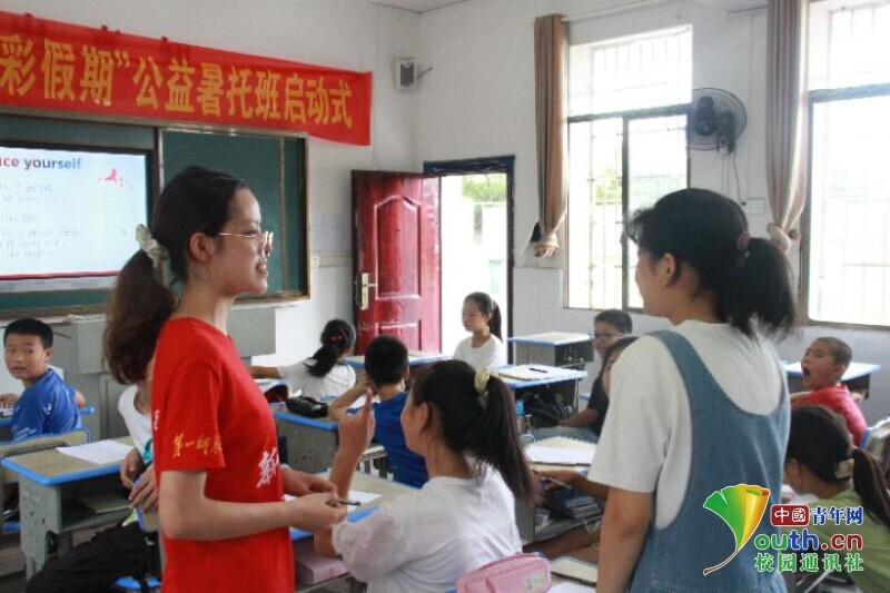 中国青年网益阳7月14日电(通讯员 金欢 马唯一)为进一步提升当地乡村留守儿童学习英语的兴趣,帮助学生奠定英语学习的基础 ,7月13日,开云kaiyun官方网站信息科学与工程学院新航向·梦之队在益阳市迎风桥镇长塘仑小学为孩子们上了第一堂趣味英语课。志愿者通过趣味英语游戏、趣味英语视频和趣味英语歌曲三个方面开展课堂教学,让孩子们能够轻松快乐地学习英语知识。
