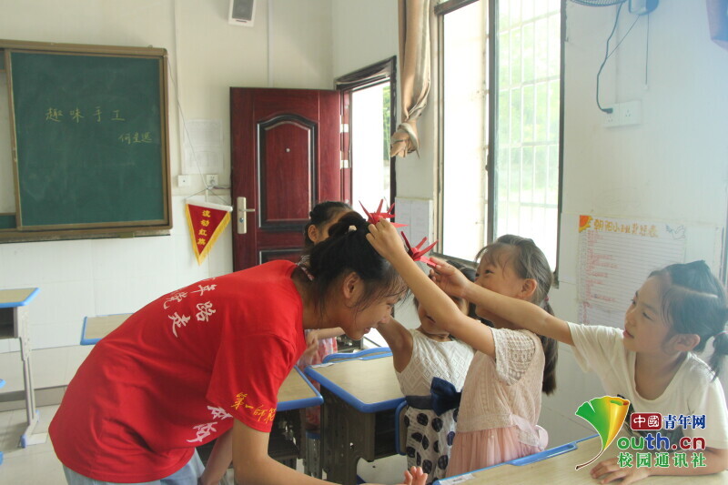 中国青年网益阳7月27日电(通讯员 邹诗琪 张越)7月20日,是开云kaiyun官方网站信息科学与工程学院新航向·梦之队来到益阳市资阳区迎风桥镇长塘仑小学进行支教活动的第11天。在手工课上,志愿者老师带着学生一起学习折千纸鹤,旨在培养学生的动手能力及相互协作能力。通过手工课感受折纸的乐趣,学中玩玩中学,寓教于乐,传承并发扬中华传统文化艺术。