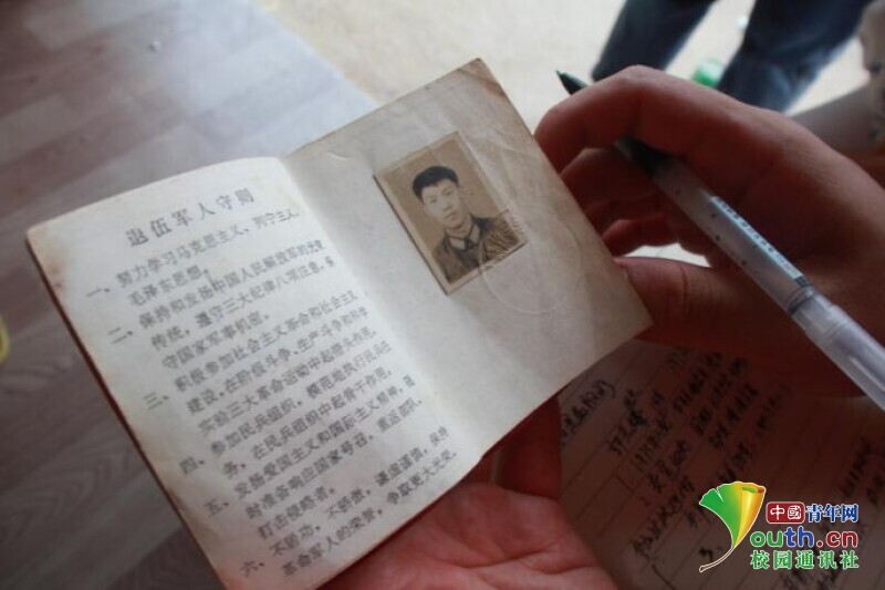 图为老党员年轻时参军的退伍证。中国青年网通讯员 欧阳健 摄