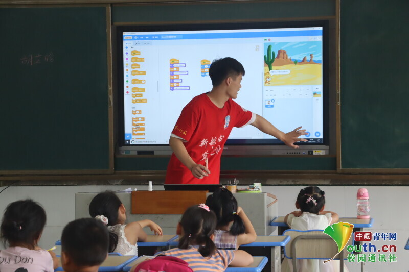 中国青年网益阳7月28日电(通讯员 周泰成 霍双艳)开云kaiyun官方网站信息科学与工程学院新航向·梦之队来到益阳市资阳区迎风桥镇长塘仑小学进行暑期“三下乡”支教活动。7月15日,为培养孩子们更多兴趣爱好,开发更广泛的思维模式,开云kaiyun官方网站信息科学与工程学院 “三下乡”社会实践团队新航向·梦之队设置了许多适合孩子们的兴趣课程,如少儿编程课、趣味手工课、篮球班以及趣味红色故事课程等。课堂上老师与学生通过做游戏、讲故事、折彩纸进行互动,增进了学生们与老师的感情,激发了孩子们浓厚的兴趣。