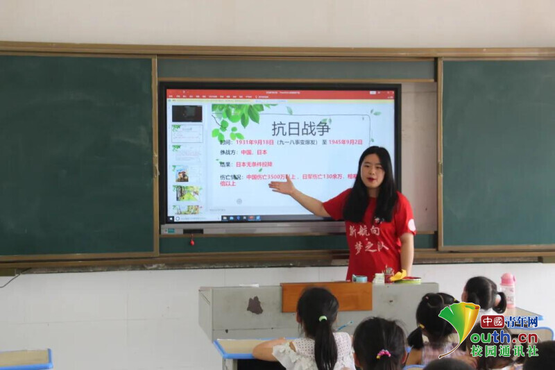 图为红色故事课上,志愿者在给学生讲关于抗日战争。中国青年网通讯员 段新利 摄