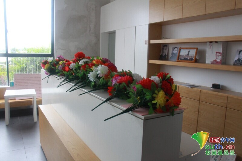 图为参观者在参观张国基纪念馆时献给国基先生的花。中国青年网通讯员 欧阳健 摄