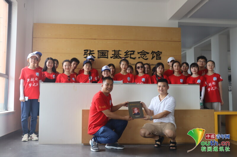 图为在参观张国基纪念馆后,工作人员将张国基纪念册赠予新航向·梦之队,并合影留念。中国青年网通讯员 段新利 摄