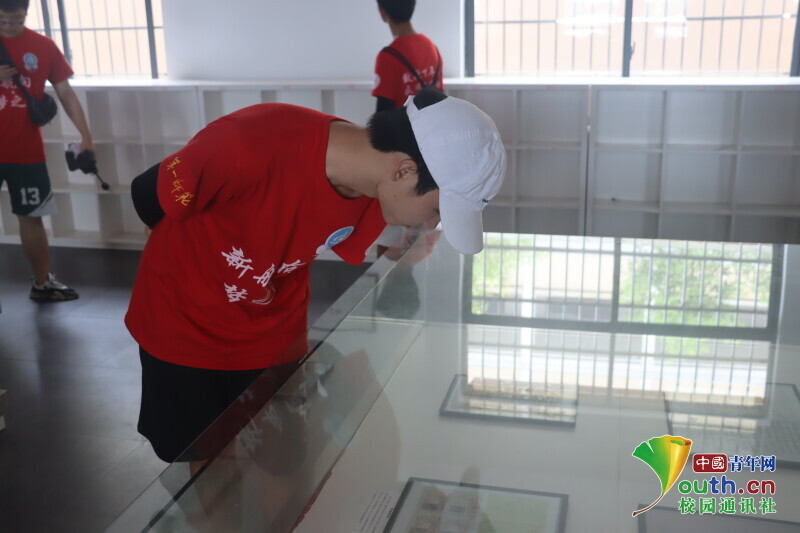图为志愿者正在认真观看张国基与外国友人来往的信件。中国青年网通讯员 段新利 摄
