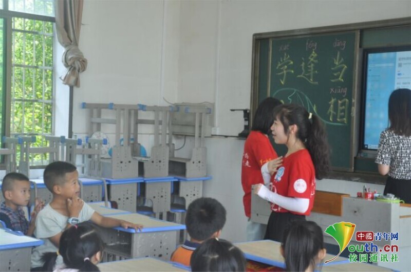 图为两位班主任鼓励引导孩子在全班同学面前做自我介绍。中国青年网通讯员 段新利 摄