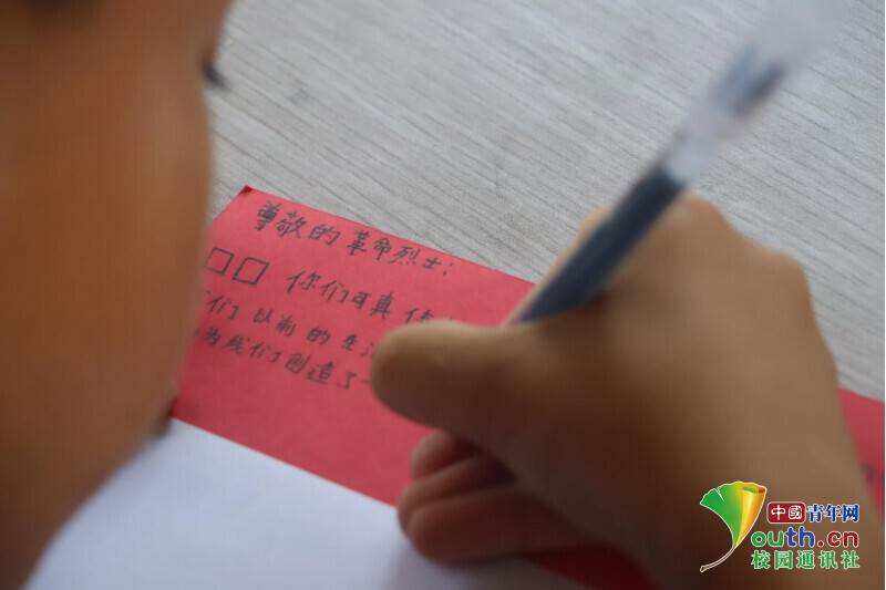 图为在红色趣味故事课中,深受感动的学生们为革命先烈写信,进行一场跨越时空的对话。中国青年网通讯员 马唯一 摄