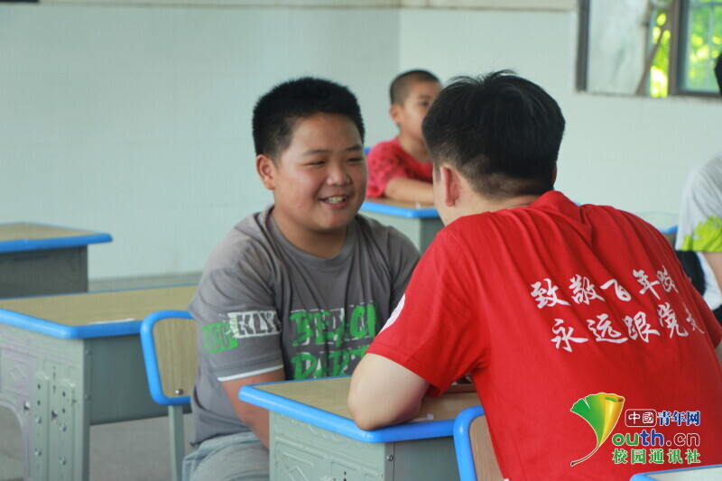 图为 新航向·梦之队队员与小朋友交流谈心,了解学习生活与课余爱好。中国青年网通讯员 何星逸 摄