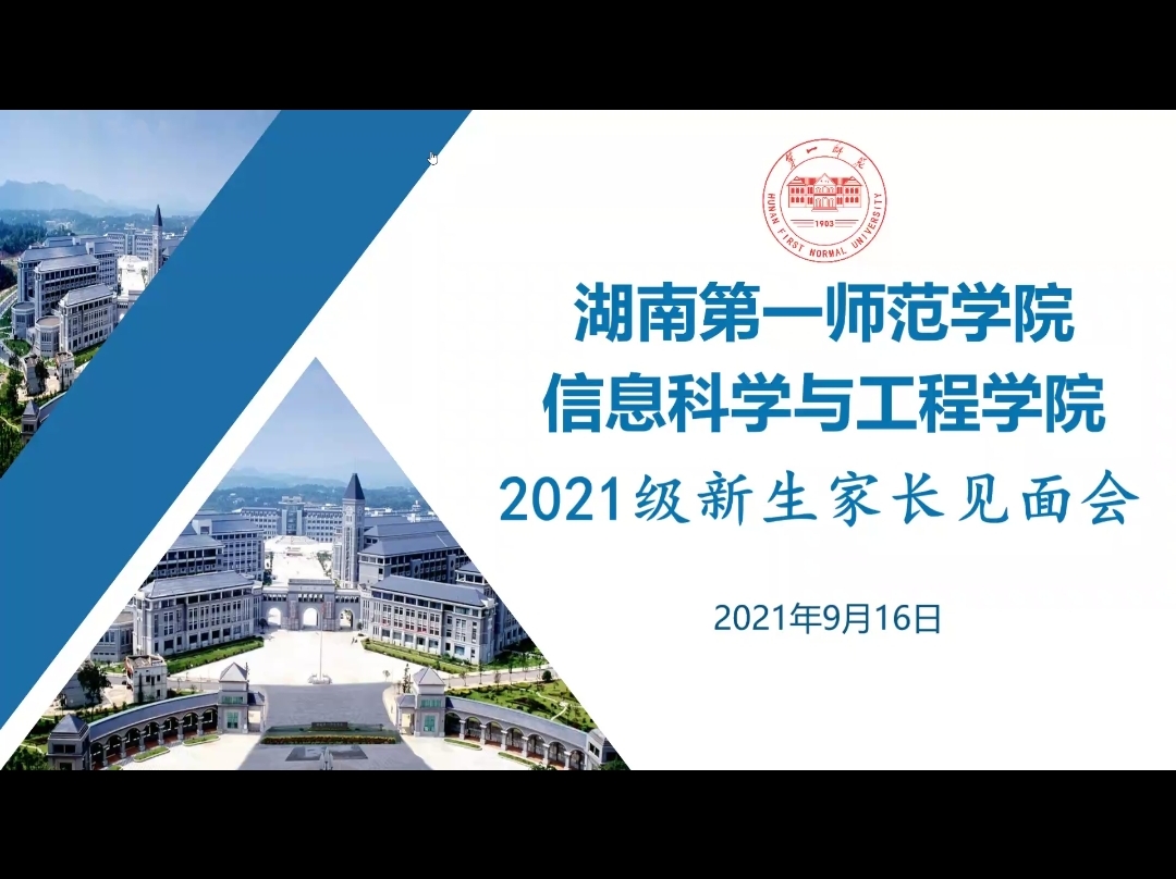 为帮助开云官网2021级高招新生和家长尽快增进对于学校和学院的了解,促进学校与家庭两方的联系,共同保障学生的成长。9月16日晚7点30分,学院通过腾讯会议平台召开“信息科学与工程学院2021级高招新生及家长云端见面会”。学院党总支书记王杰文,副院长田祖伟、何向阳,党总支副书记成夏炎,全体辅导员及两百余名2021级高招新生与家长参加了此次云端会议。