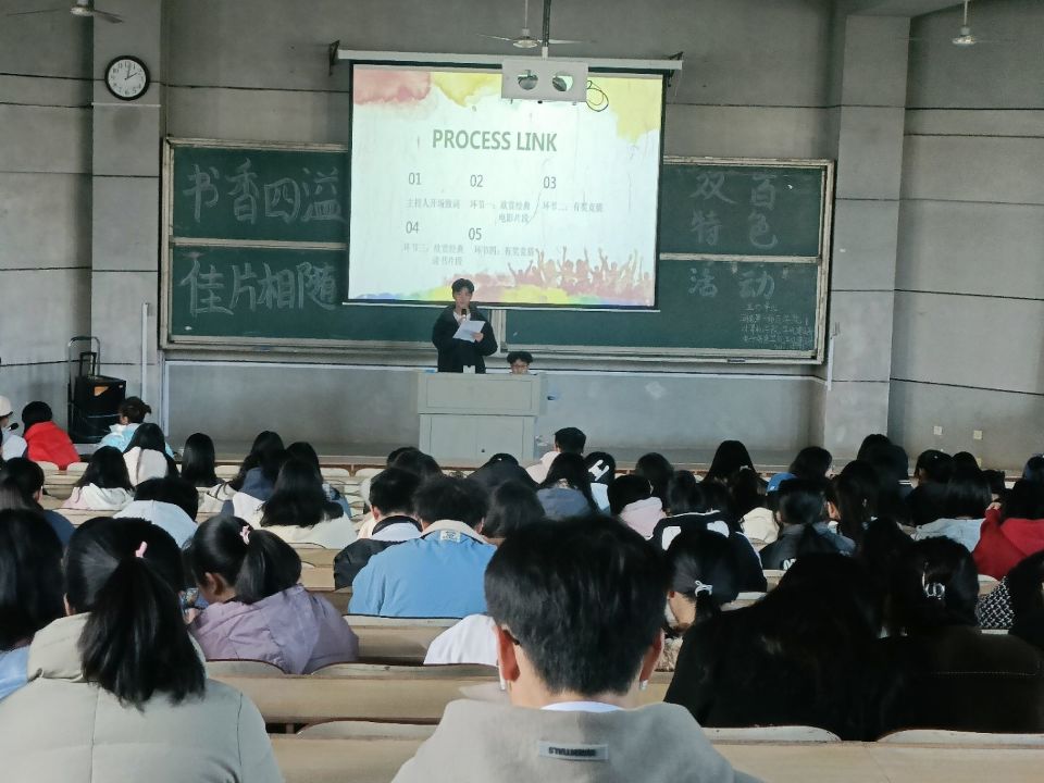 主持人精彩的开场致词,预示着此次特色活动拉开了序幕。环节一--重温经典,带领大家重温了不同时代下创作的经典红色电影,让同学们深感无数先辈的革命主义精神和革命乐观态度。此环节激起了同学们的爱国热情,弘扬了以爱国主义为核心的伟大民族精神。随后,便到了全场激动澎湃的环节二--有奖竞猜。此环节以考查电影的小细节的形式展开。当精美的小礼品呈现在眼前,很多同学积极抢答,现场十分活跃。让我们深刻感受到:读书足以怡情,足以长才,经典从不会缺席。环节三--欣赏经典书籍片段。该环节围绕有感情地朗读展开。读者,很是投入;听者,很是触动。环节四,也讲接近本次活动的尾声,我们又到了有奖竞猜时刻,有了之前的积累,知道的同学自信地抢答,赢得了其他同学热烈的掌声和心怡的小礼品。最后,在主持人精炼的总结中,此次活动画上了完美的句号。