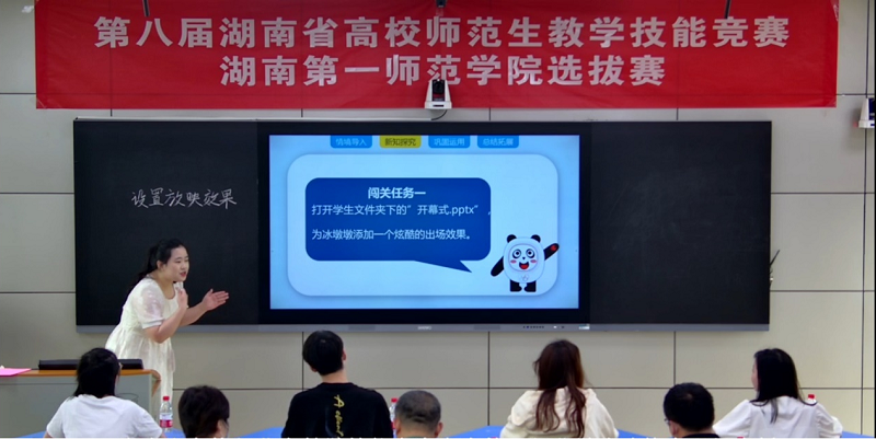 5月8日,第八届湖南省高校师范生教学技能竞赛开云kaiyun官方网站选拔赛在特立北501举行,开云官网推选的两名参赛选手徐仪婷和蒋郑菊在全校小学组35名优秀选手中脱颖而出,双双入选推荐参加湖南省师范生教学技能竞赛,并名列比赛前9名,即将进入学校“明日之星”师范风采大赛决赛。