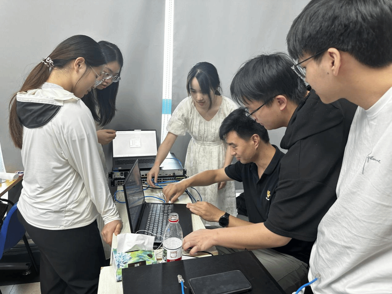 该团队由计算机科学与技术、数据科学与大数据技术专业学生组成,重点围绕计算机网络技术开展实践。学生们在企业工程师指导下,深入实操交换机与路由器配置、VLAN间路由互访、DHCP服务搭建及链路聚合等网络技术应用,通过模拟企业真实网络环境,将课堂所学的TCP/IP协议、网络拓扑设计等理论知识转化为实操能力。