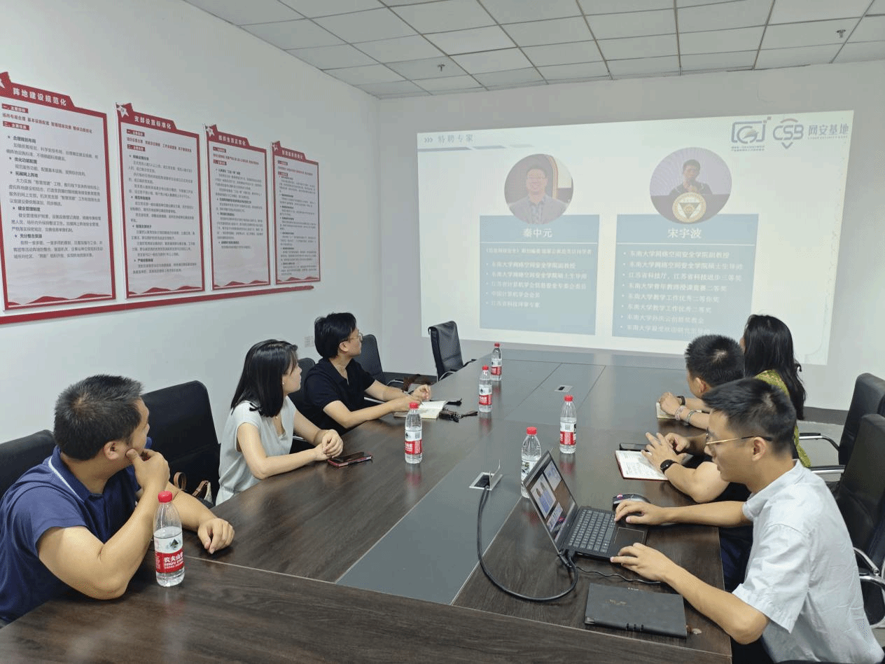 随后,校企双方举行座谈。熊勇介绍了基地的发展规划和人才需求,表达了在人才培养、课程共建、实习实训等方面深化合作的愿望。陈奕介绍了学院的学科建设与人才培养特色,强调学院高度重视实践教学环节,希望以此走访为契机,共同探索人才培养新模式。双方围绕实践教学优化、师资队伍建设、学生就业指导等进行了务实交流,并达成共识,未来将在网络安全人才培养、科研项目协作等领域开展更具实质性的合作。