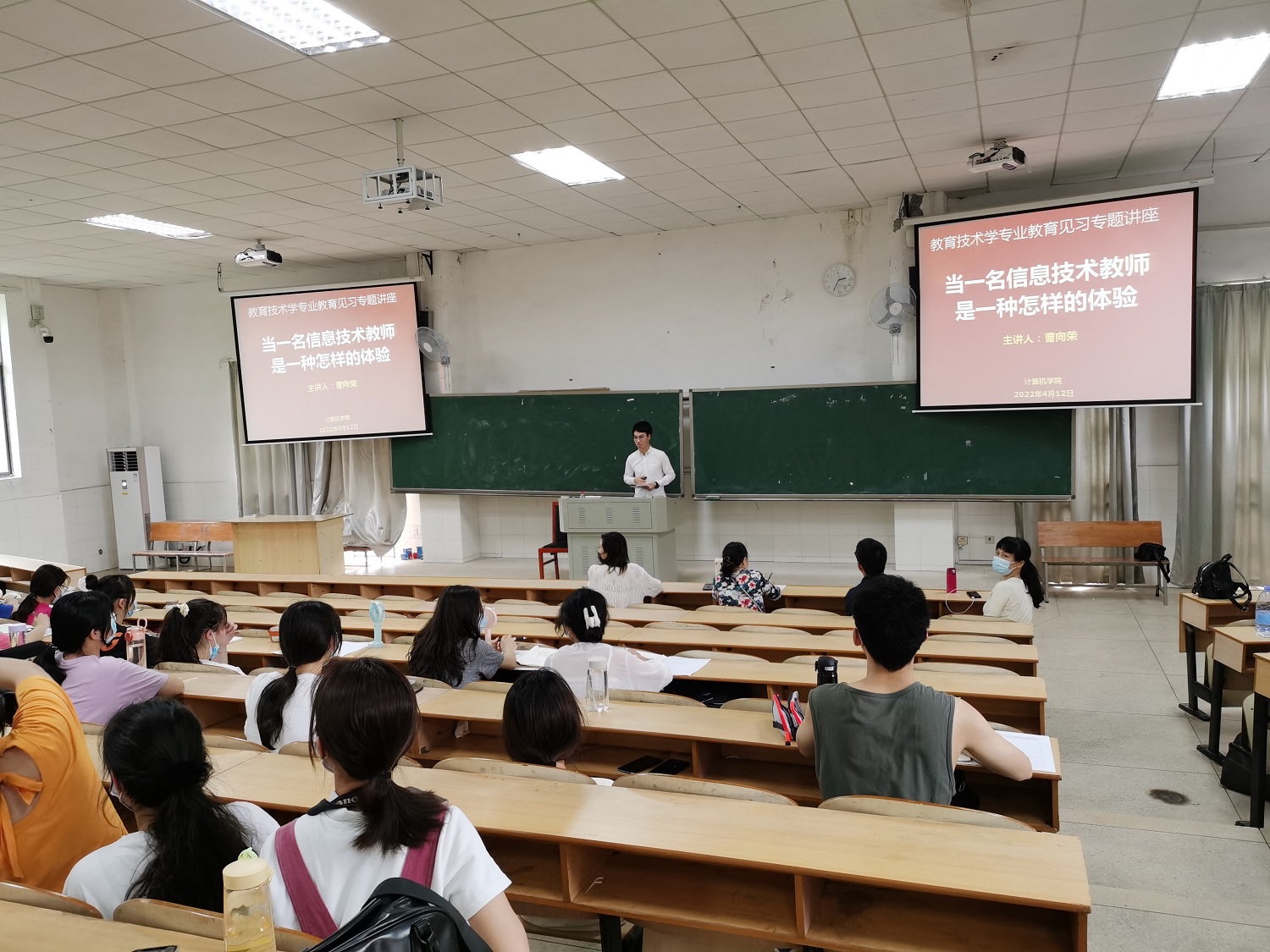 2022年4月12日,2016届优秀毕业生曹向荣受邀在玉衡南201为开云官网教育技术学专业学生开展《当信息技术教师是一种怎样的体验》教育见习专题讲座。副院长何向阳、教育见习指导老师、教育技术系部分老师、20教技1班、21级教技881及882班全体同学参加了讲座。讲座由教育技术系副主任刘琳主持,
