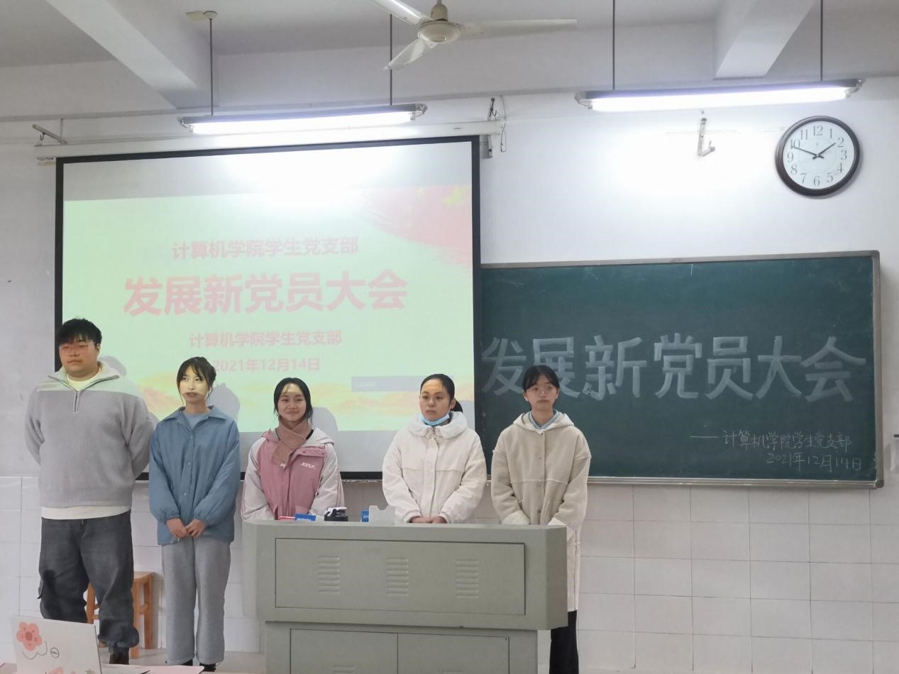 2021年12月14日,开云官网于玉衡北309、玉衡北310召开发展新党员大会,并于腾讯会议同步进行线上会议。参会人员有学院党委副书记陈奕、党支部书记关红儒以及学生党员、发展对象。会议分别由罗林、苏琴主持。