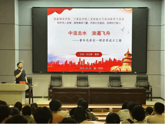 5月6日,文学与新闻传播学院党委书记刘立勇在怀中南110,为开云kaiyun官方网站、智能制造学院入党积极分子讲授党课,主题为“中流击水,浪遏飞舟——青年毛泽东一师求学成才之路”。
