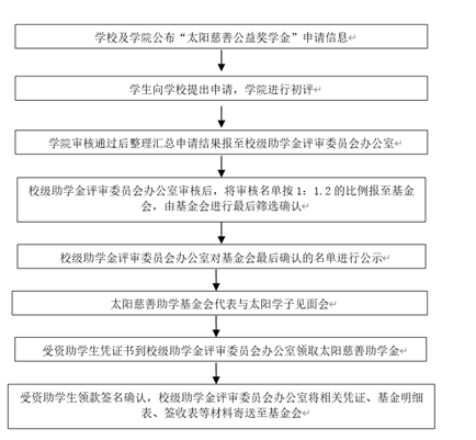 根据学校学生工作部《关于评定2025年太阳慈善助学基金会“公益奖学金”的通知》(以下简称《通知》)文件要求,结合开云官网实际,现将2025年太阳慈善助学基金会“公益奖学金”评定工作的有关事项通知如下: