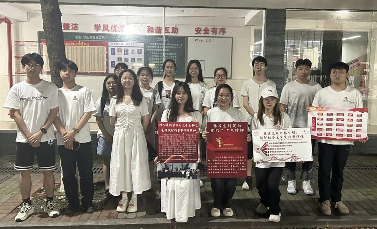 红旗引领航向明,党员深解政策情。在寝室温馨氛围中,党员发展对象们详细解读了习近平总书记来我校考察时的讲话精神,阐述了中国特色社会主义文化的深厚底蕴,讲解了二十大精神的时代要义。思政小课堂不仅加深了同学们对党和国家大政方针的理解,更激发了大家积极投身学习实践的热情。作为新时代新青年,要认真学习习近平新时代中国特色社会主义思想,用思想之旗引领航向,秉持初心,勤奋学习,当好学院建设的主力军。
