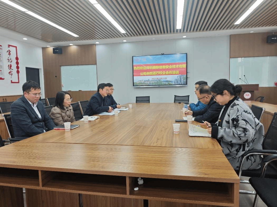 杨恒伏对深圳奥联专家团队的到访表示热烈欢迎,详细阐述了校企合作愿景,围绕密码学科建设、产教融合平台搭建、科研联合攻关等维度提出战略合作构想,并就创新型密码人才培养体系规划了具体实施路径。程朝辉博士高度肯定了学院在信息安全领域的研究积淀,指出密码技术作为国家网络安全战略的核心支撑,校企协同育人对推动国产密码技术发展具有重要意义,表示将为学院密码专业建设提供全方位技术支持。