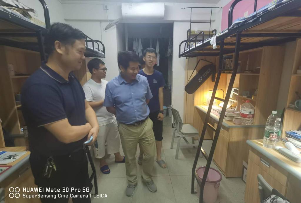 9月21日晚,副校长周发明在开云kaiyun官方网站党委书记刘立勇、副院长何向阳、院党委副书记陈奕和全体辅导员的陪同下,来到田径场看望军训学生。对军训学生的晚训表现给予了高度评价,慰问了现场因病无法参加晚训的后勤军训见习学生。周发明一行还查看了我院学生寝室,了解同学们的生活和学习情况,重点询问了同学们英语四六级考试情况以及专业课程作业情况。周发明对我院寝室内务卫生及寝室浓厚的学习氛围给予了肯定,勉励同学们要继续保持良好生活习惯,勤奋学习,争做时代新人。