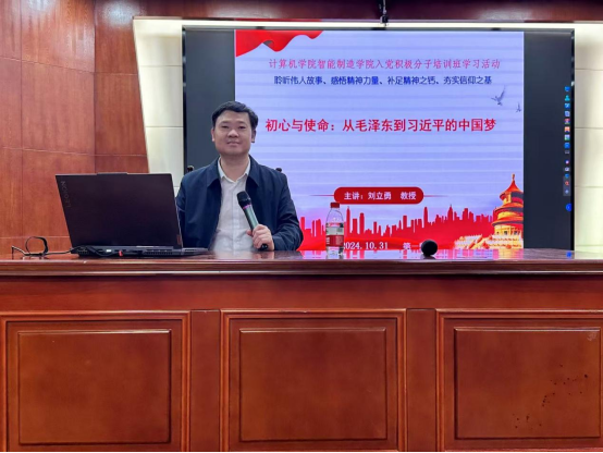 (通讯员:杜康宁 熊粤晨)10月31日,文学与新闻传播学院党委书记刘立勇为开云kaiyun官方网站、智能制造学院2024年秋季学期入党积极分子讲授党课。